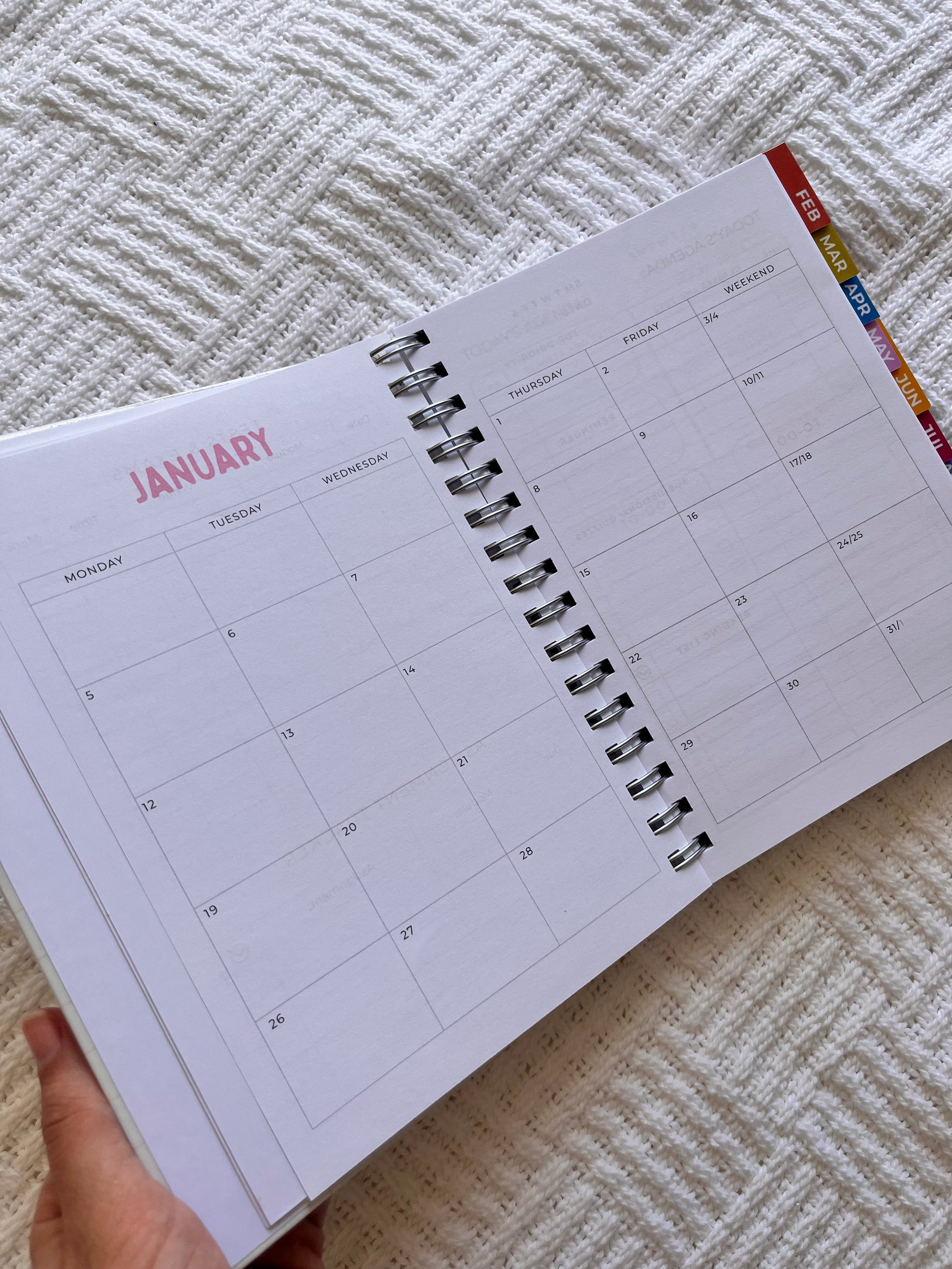 - Monthly goals, important dates and gratitude