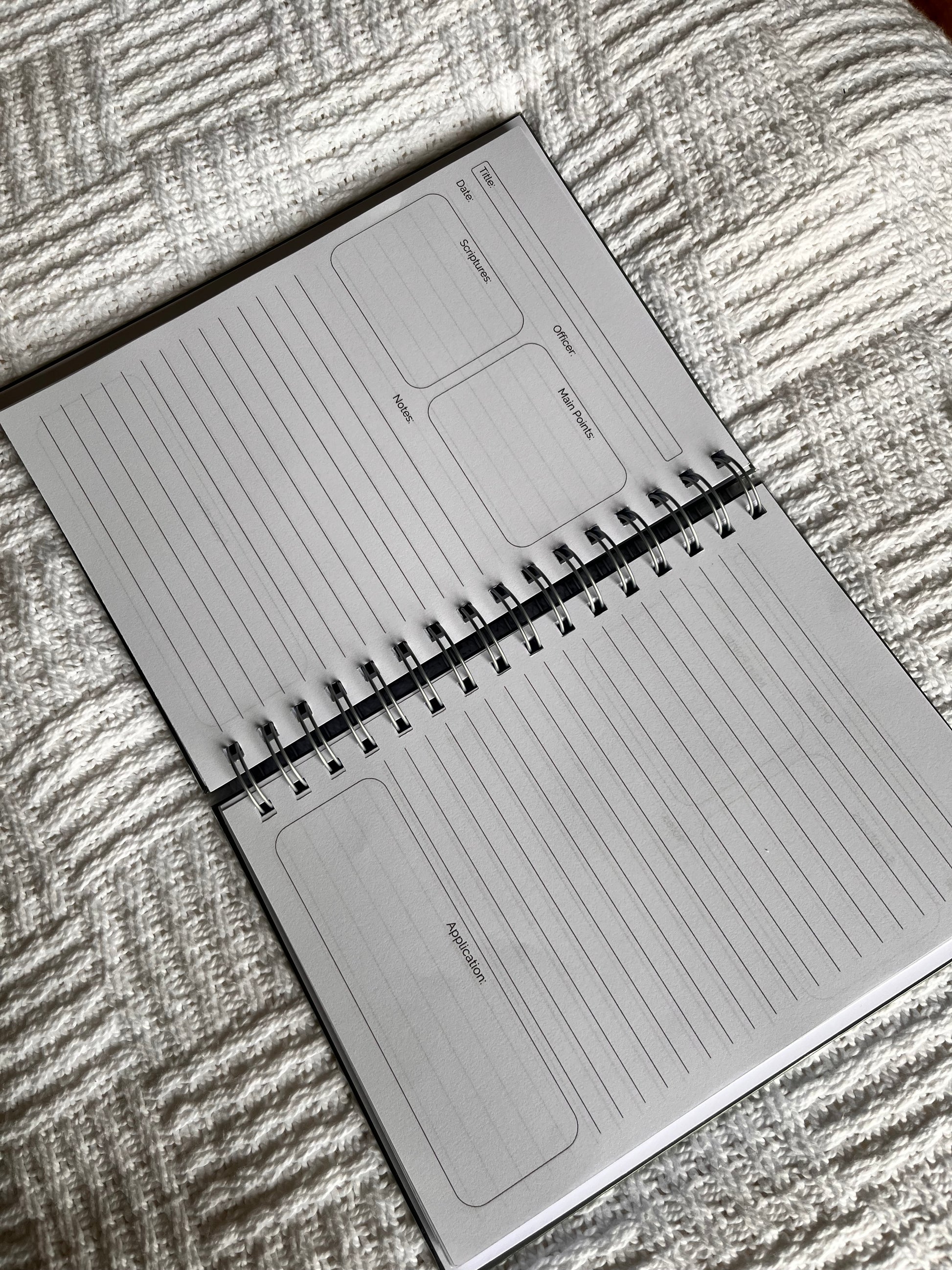 Our sermon notebook is meant to accompany you to church so that you can take notes during in-person and online church sermons, allowing you to be truly enriched and transformed by God's word.