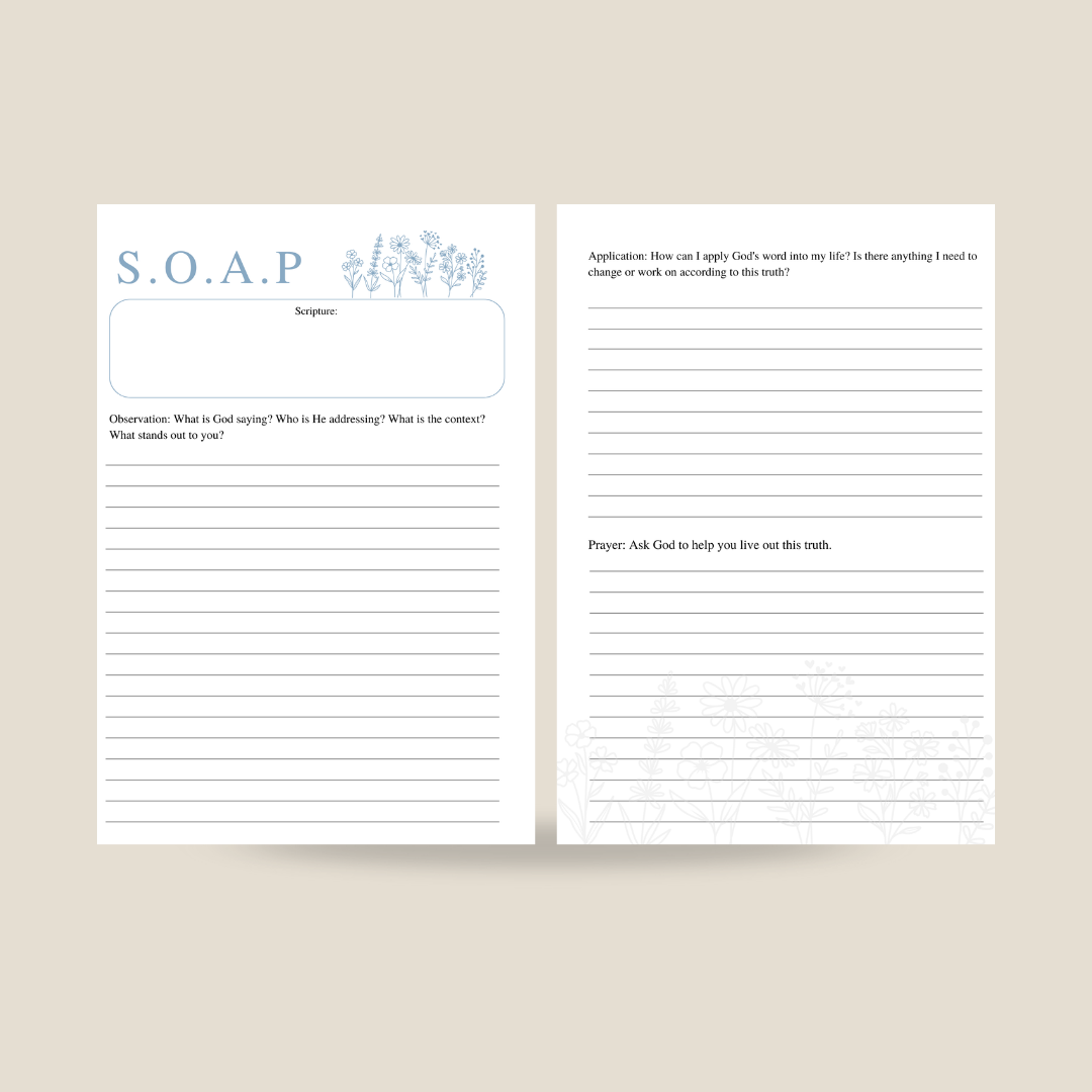 - Bible study section: 100 sheets, 200 lined pages with SOAP Method
