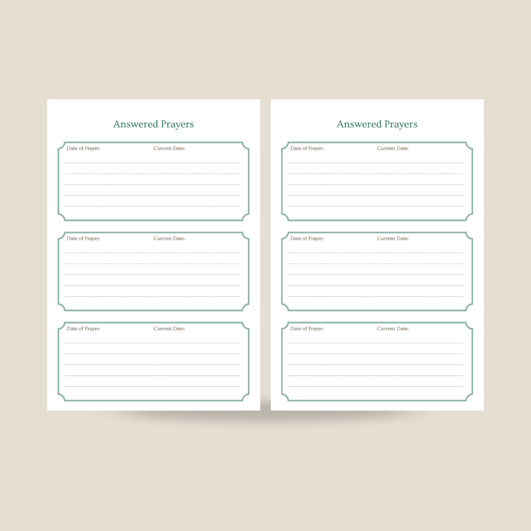 Our Prayer Journal was thoughtfully designed to guide your prayers. Starting off with thanksgiving and gratitude, moving into prayer for others and then presenting your own requests to God--this is a simple yet powerful formula of prayer. It also features pages to document how God has answered your prayers, reminding you of His faithfulness. Our prompts are perfect for those who need a little direction in their prayers or those who are praying for the first time.