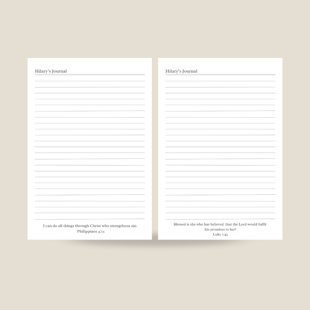 - 150 lined pages with Bible verses and your name